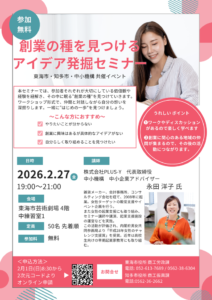 - 2026年2月27日開催 東海市・知多市・中小機構共催 創業機運醸成セミナーに登壇